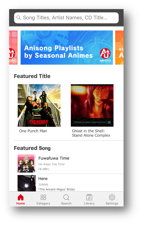 - Jangkauan playlist yang luas, disusun dari judul anime, penyanyi, dll.