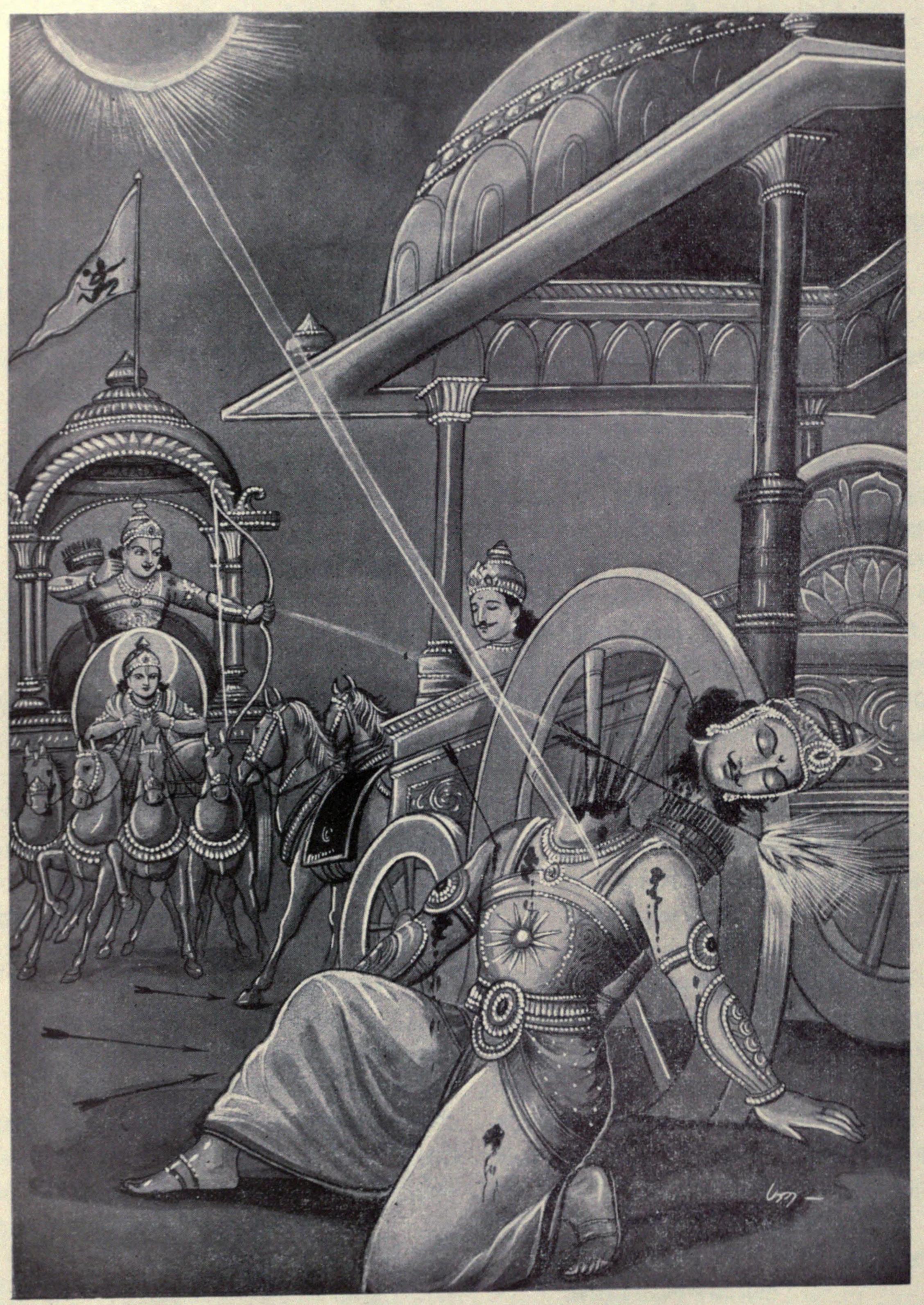 Benar saja–Arjuna mengalahkan Karna tak dalam pertarungan langsung. Melakukan tipudaya yang ‘tak pantas dilakukan seorang Ksatria’, Arjuna menembakkan panahnya ketika Karna sedang sibuk membetulkan kereta kudanya. Karna mati, kakaknya itu, ketika tak jelas apakah ia tahu prajurit lawan yang telah ia bunuh adalah kakaknya sendiri.