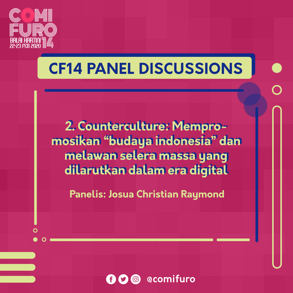 Comic Frontier 14 juga akan menghadirkan berbagai acara dan konten baru di panggung utama. Salah satunya ada kesempatan para insan kreatif untuk turut serta tampil memeriahkan perhelatan ini dalam konten berjuk diskusi panel yang dilansanakan di panggung utama. Diskusi panel ini dibawakan oleh para panelis dari berbagai macam latar belakang yang diseleksi oleh tim Comic Frontier. Sesi diskusi panel ini diadakan menyambut semakin banyaknya studi ilmiah dan diskusi seputar pop culture yang diadakan baik dalam media forum diskusi, blog, jurnal ilmiah, hingga podcast.