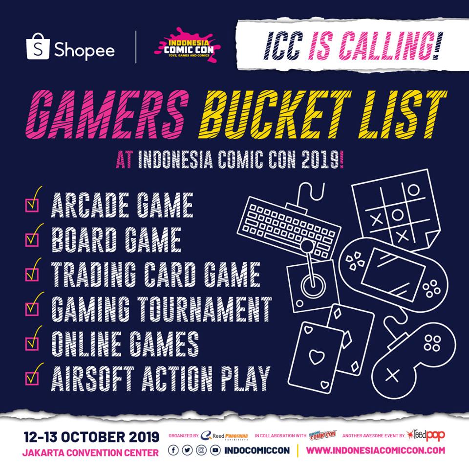 Bagi para pencinta game tahun ini Shopee Indonesia Comic Con juga mengadakan turnamen game dari Tekken 7 dan Street Fighter yang di dukung oleh IESPA. Selain turnamen, akan hadir pula gaming zone yang menyajikan berbagai macam permainan mulai dari Arcade Games, Trading Card sampai dengan Board Games.