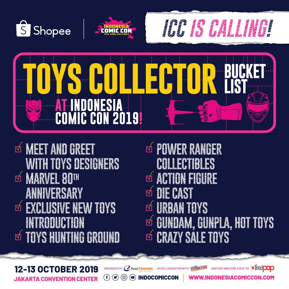 Bagi kalian para toys collector jangan bersedih. Shopee Indonesia Comic Con juga menawarkan berbagai jenis brand mainan. Ada Marvel 80th Anniversary, XM Studio, Museum of Toys, FUNKO, Sylvanian Families, Hot Toys dan Gunpla persembahan dari Multi Toys, Tokidoki dan PopMart persembahan dari Action City, Jada, Burango dan Majorette dari Bariel, Toys Holic, Toys kingdom, dan berbagai macam collectible items lainnya di ‘Toys Hunting Ground”. Pastinya banyak mainan yang baru yang akan kalian temui di Shopee Indonesia Comic Con.