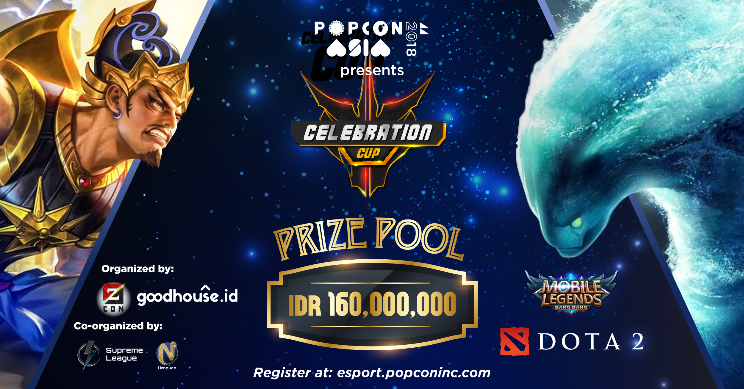 Ada dua gim yang akan ditandingkan di Celebration Cup, yaitu Mobile Legends: Bang Bang dan DOTA 2. Siapa saja dapat mengikuti kompetisi ini, dengan total hadiah Rp.160.000.000,-, dengan mendaftar di laman https://esport.popconinc.com. Untuk pendaftaran DOTA 2 paling lambat tanggal 6 September dan Mobile Legends: Bang Bang pada tanggal 13 September.