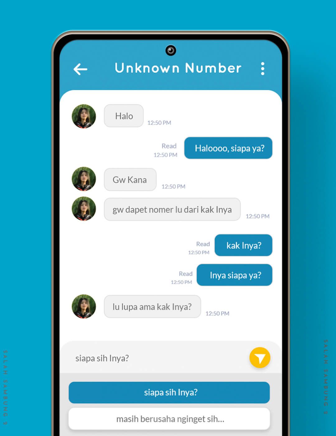Lama tak bersua, kini Salah Sambung kembali lagi. Jika Anda lupa, Salah Sambung adalah game chat realistis yang bermula dari chat nyasar seorang gadis cantik bernama Luna yang Anda terima, Anda bisa memilih berbohong atau jujur padanya yang pada akhirnya akan membawa Anda ke sebuah cerita misteri hantu/kematian kekasih Luna.