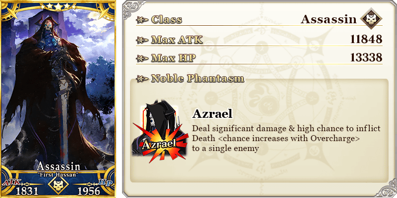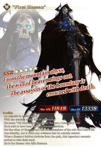 Tapi toh, dengan statistik yang mumpuni dan karakter yang baik untuk berada dalam satuan tim, First Hassan pantas mendapatkan pangkat SSR dan gelar serta kemampuan Grand Assassin dengan segala kemampuannya—hero yang setara dengan jumlah saint quartz yang dikeluarkan untuk menebusnya.