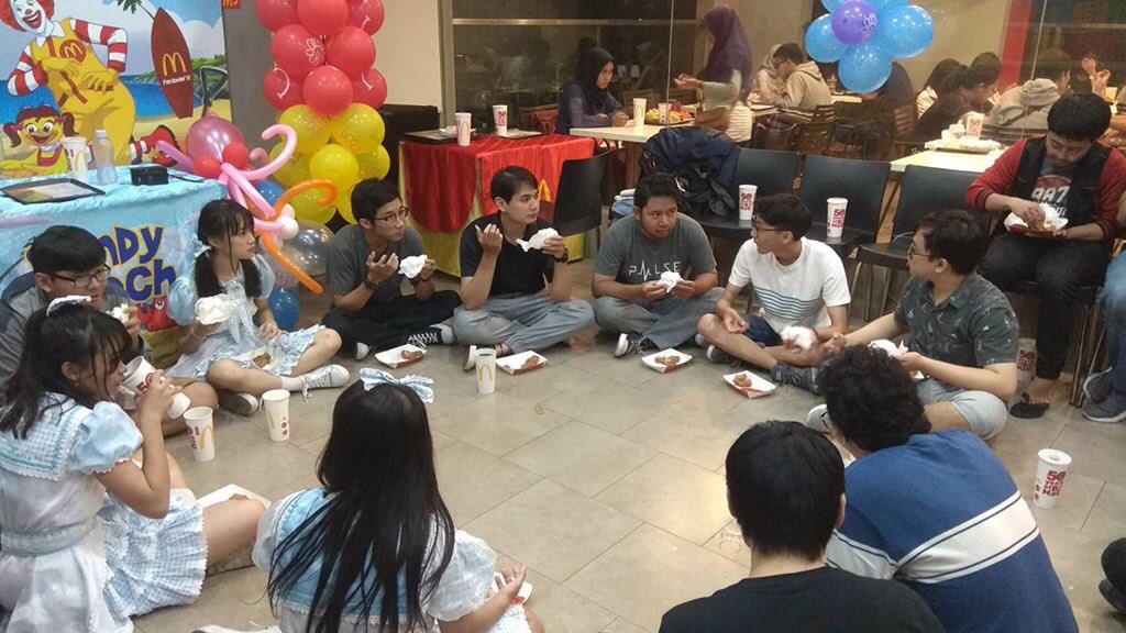 Tren merayakan ulang tahun di restoran cepat saji masih berlanjut. Adalah Risaldi Hartono (21), seorang penggemar jejepangan yang merayakan ulang tahun bersama teman-temannya di McDonald’s Sudirman, Yogyakarta Selasa, 20 November 2018. Ia menuturkan ide perayaan ulang tahunnya diilhami oleh postingan viral yang sempat menggegerkan dunia maya beberapa waktu lalu.