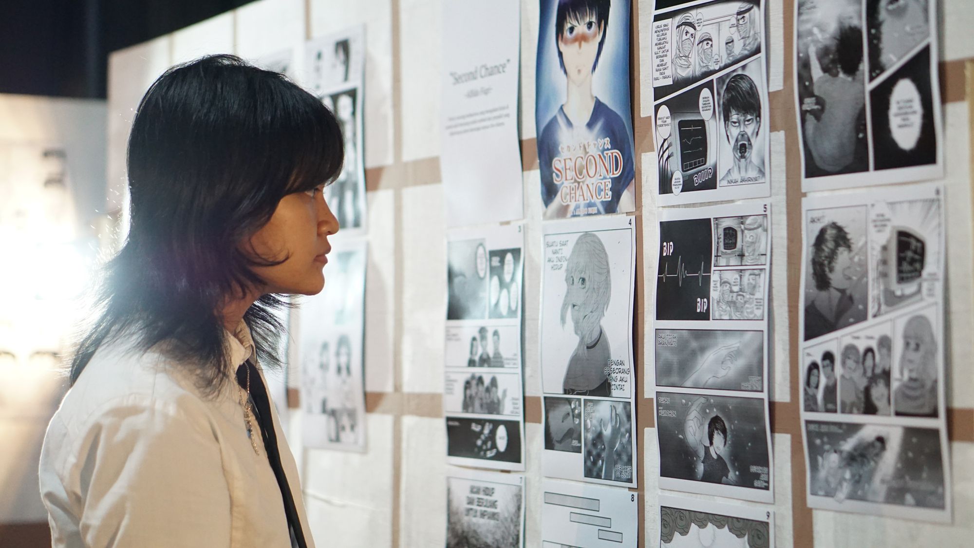 Pengunjung mengamati hasil karya lomba yang diadakan Mangafest (Foto: Mustafa Kharis)
