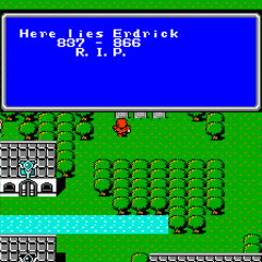 Final Fantasy merupakan serial JRPG yang dirilis setahun setelah gim perdana Dragon Quest. Awalnya gim ini merupakan saingan dari Dragon Quest, namun setelah Square bergabung dengan Enix selaku publisher Dragon Quest, mereka berdua menjadi satu perusahaan. Disini terlihat nama karakter Dragon Quest tertulis pada kuburan di desa tertentu, namun hal ini berlaku untuk Final Fantasy keluaran barat. Referensi ini sebelumnya juga pernah dipakai oleh gim Zelda II: The Adventure of Link.