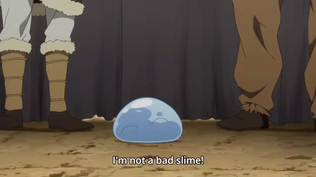 Tensei Shitara Slime Datta Ken sendiri memakai karakter Slime sebagai bentuk rupa Rimuru selaku karakter utama setelah ia bereinkarnasi dari kematian tragisnya. Slime juga merupakan maskot kesayangan Dragon Quest yang sukses menghasilkan berjuta inspirasi didunia RPG. Namun tidak hanya itu, siapa sangka ternyata Rimuru sebelumnya merupakan penggemar berat gim Dragon Quest? Ya, pada cuplikan ini dia mengucapkan quote dari gim tersebut secara terus terang.
