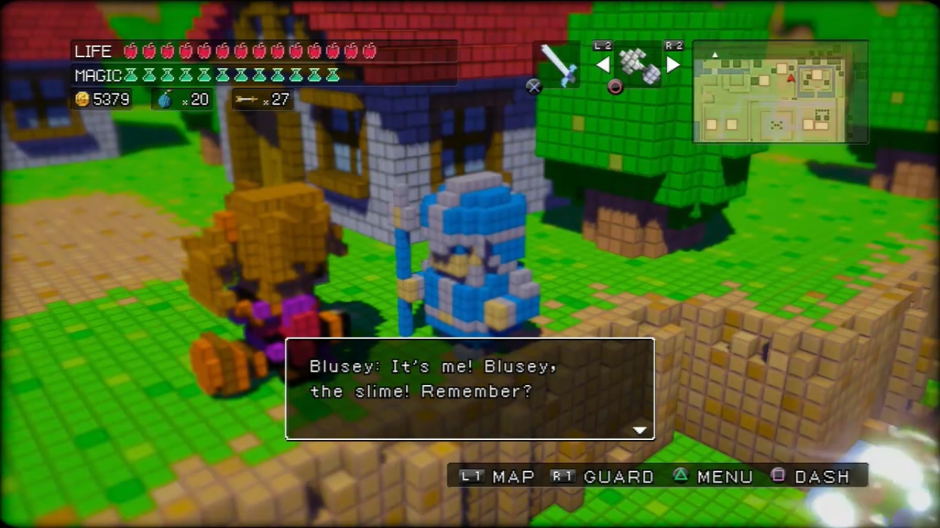 Salah satu dari sekian referensi Dragon Quest yang ada pada gim ini, seekor Slime yang menjadi manusia