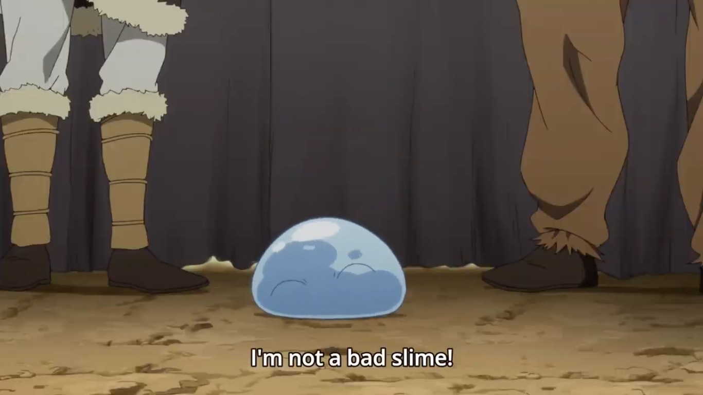 Tensei Shitara Slime Datta Ken sendiri memakai karakter Slime sebagai bentuk rupa Rimuru selaku karakter utama setelah ia bereinkarnasi dari kematian tragisnya. Slime juga merupakan maskot kesayangan Dragon Quest yang sukses menghasilkan berjuta inspirasi didunia RPG. Namun tidak hanya itu, siapa sangka ternyata Rimuru sebelumnya merupakan penggemar berat gim Dragon Quest? Ya, pada cuplikan ini dia mengucapkan quote dari gim tersebut secara terus terang.