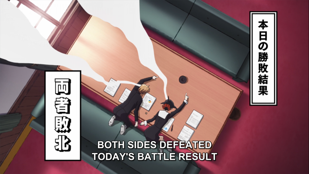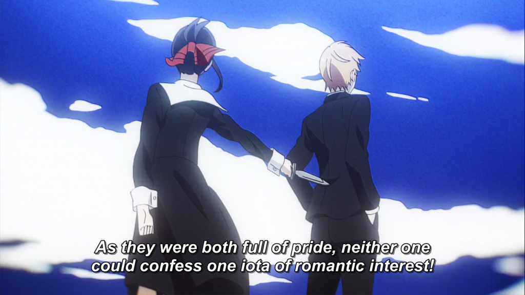 Jelas bahwa ada tujuan yang lebih tinggi dari keduanya daripada narasi yang ditunjukkan dalam anime ini, yang dibangun oleh masing-masing pihak. Lalu mengapa Kaguya dan Shirogane tetap bertahan pada posisinya masing-masing? Saya akan mengajukan satu hal: bahwa kedua partisipan terlalu bertahan dengan premis ‘mereka yang menyatakan cintanya pertama, kalah’ sampai pencapaian yang lebih tinggi diabaikan.
