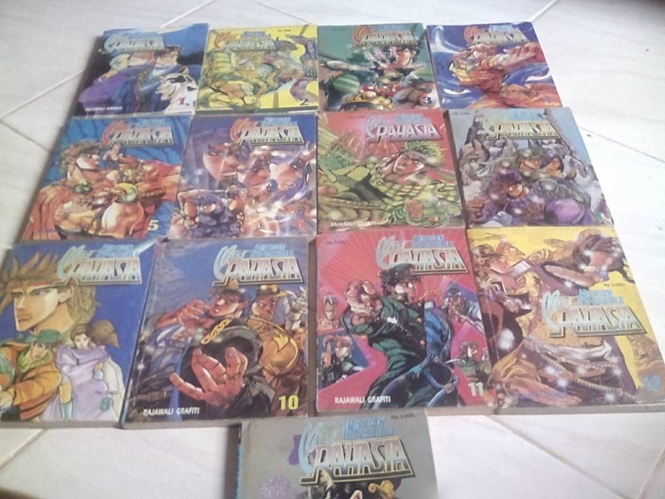 Manga Jojo ini memang sangat popular di jepang, sampai saat ini sudah ada 8 bagian cerita pada manga tersebut yang jika ditotalkan menjadi 122 volume. Tapi apakah kalian tahu bahwa manga Jojo juga pernah diterbitkan di Indonesia? Ya, manga Jojo pernah di terbitkan di Indonesia dengan judul Misi Rahasia.