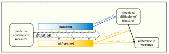 Jika seseorang dipilih untuk mempertahankan salah satu variabel seperti kebosanan, akan muncul sebuah perubahan perilaku yang berujung kepada kesepian dan lainnya menyebabkan penerapan akan pula semakin terasa sulit. Sebaliknya, jika kontrol pribadi yang akan dipertahankan, lama-kelamaan perilaku akan berusaha untuk menolak menerapkannya pembatasan sosial yang dinilai sesuatu yang membosankan di mana dapat memutus ketaatan penerapan pada pandemi.