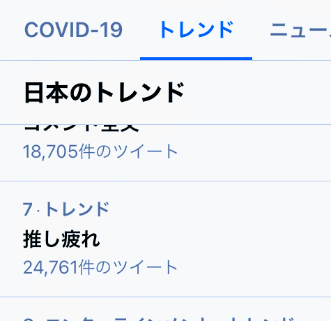 Dampak dari kehilangan minat dari pandemi inilah yang mengawali fenomena Oshitsukare yang dirasakan oleh seorang pria 30 tahun di Jepang yang merasa bahwa ketertarikannya terhadap anime, gim, dan seiyu telah berlangsung bertahun-tahun lamanya di mana sebelum pandemi, dia sering membeli album foto dan CD lagu seiyu yang digemari, bahkan mengikuti acara temu sapa.