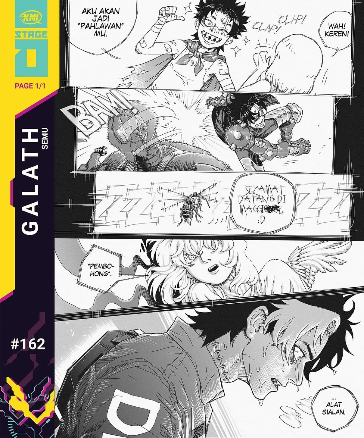 Ibs: “Wow...Too much information. 5 Panel dengan banyak cerita. Flashback di awal panel, kurang terasa seperti flashback. Karakter cowok ini juga menarik. Dia mengubah warna rambutnya juga, entah alami atau diwarnain. Karakter Galath ini sangat tipikal Shounen sekali. Menurut saya, juara pertama agak kurang appeal ke awam malah, juara kedua-lah yang paling mudah diterima awam setidaknya, dari sudut pandang wibu.”
