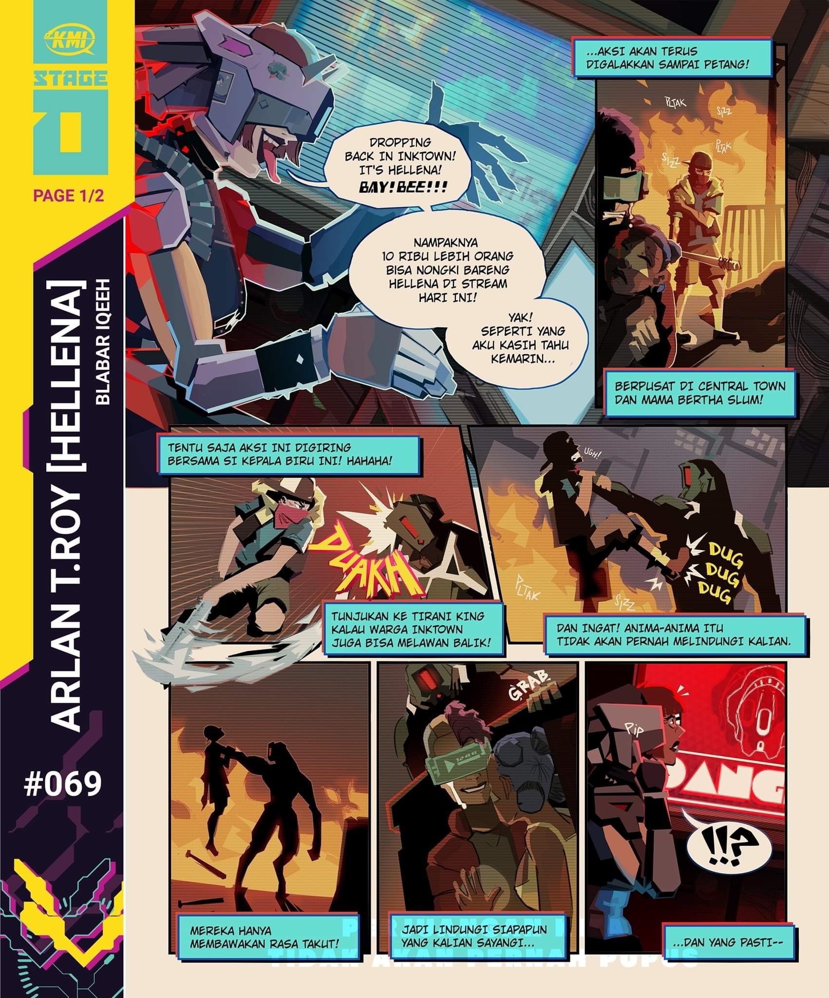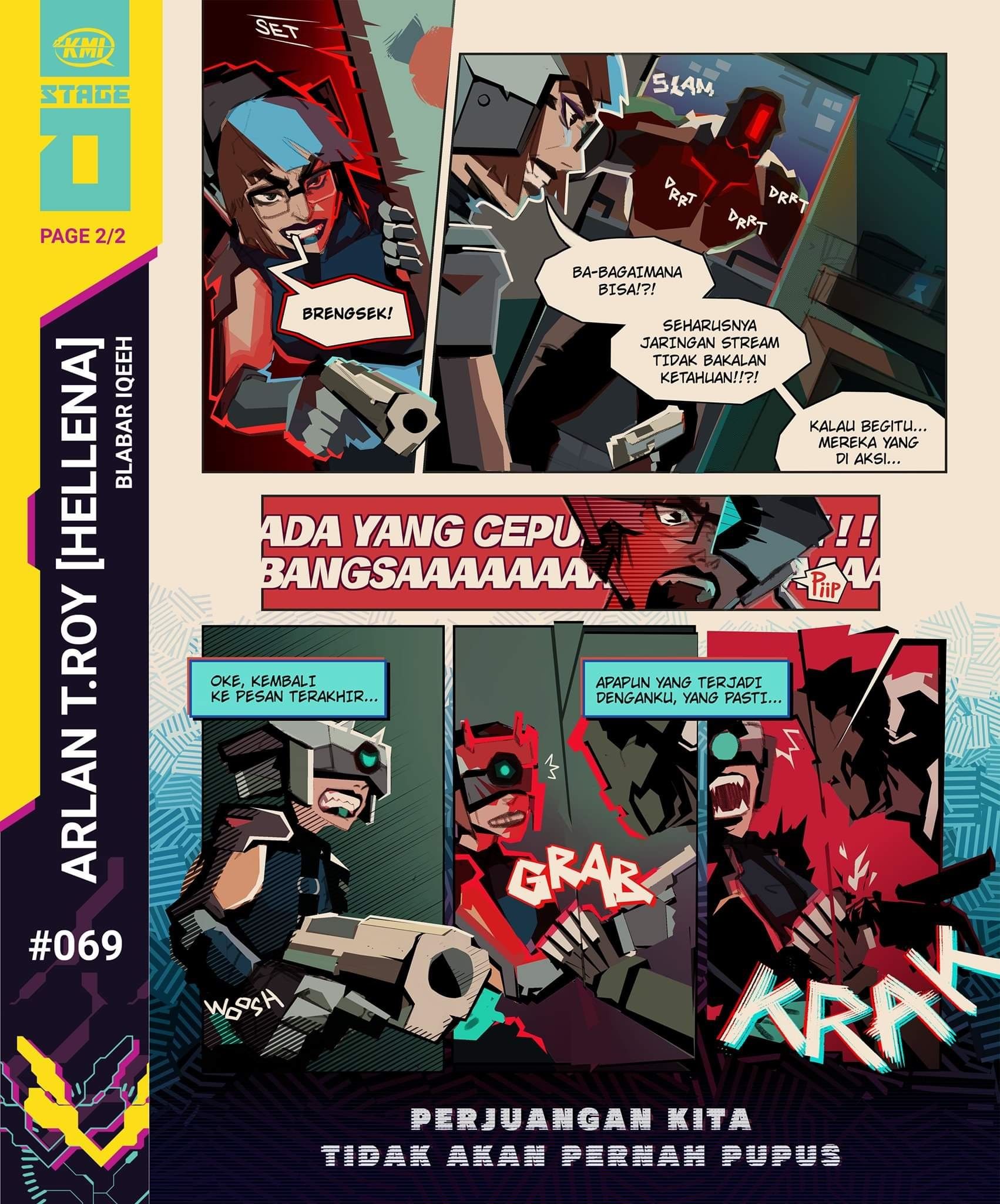 Ibs: “Impresi karakter jujur aja gak terlalu banyak, mungkin karena desain karakernya yang ala prajurit perang dunia 2 padahal temanya Cyberpunk. Setidaknya, jadi sisi nyentrik bagi karakternya. Proporsi karakter mungkin bisa ditingkatkan agar bisa konsisten. Tata letak panel, saya pribadi, suka meski agak berantakan dikit aja seperti nabrak sana-sini. Informasinya pun sulit diterima oleh mata awam. Penggunaan tone warna pun juga saya suka.”