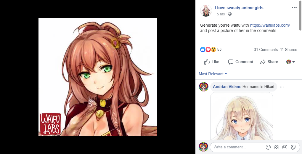 “Generate your waifu with waifulabs.com and post a picture of her in the comments”