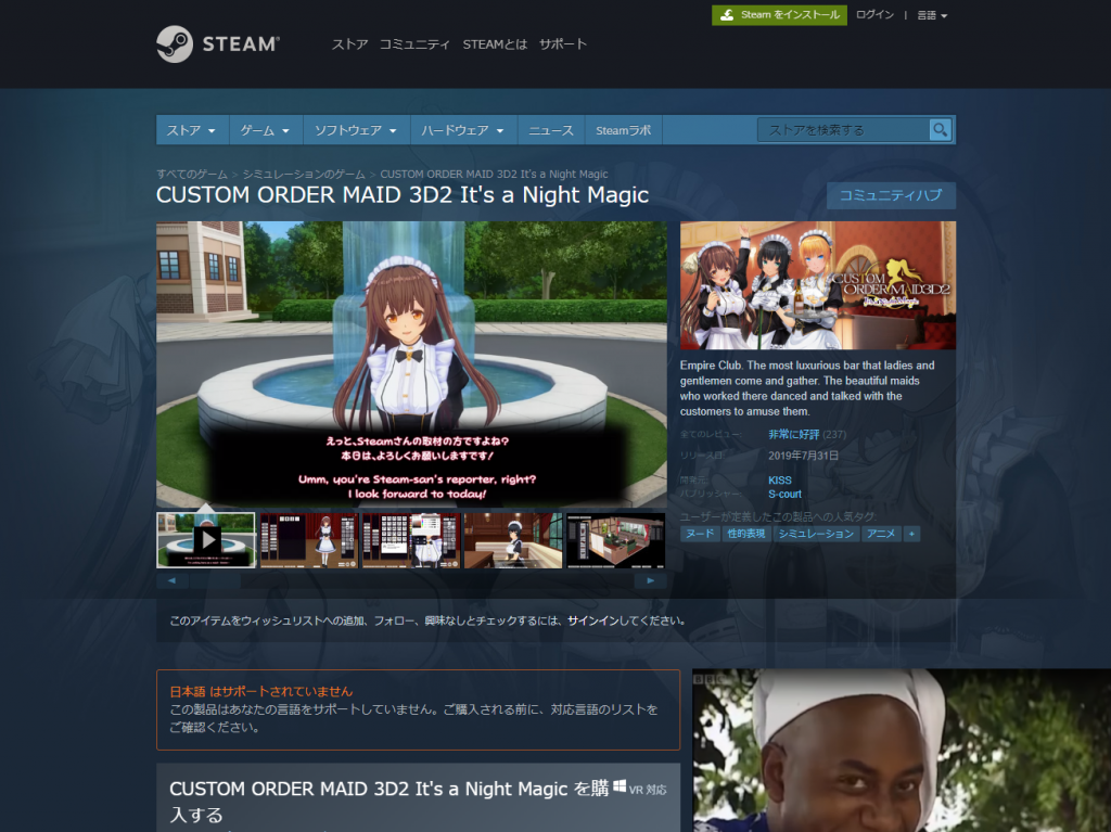 Protip: Apabila kalian membeli COM3D2 sebelum tanggal 6 Agustus 2019, kalian akan mendapatkan diskon 10%. Selain itu, karena kita tinggal di Indonesia, sistem Regional Pricing Steam memberikan kita harga spesial! Hanya Rp169.999 Rupiah saja! (sebelum diskon).