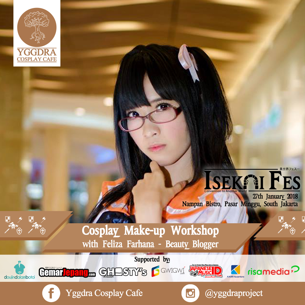 Jadi, bagi yang tertarik ingin menambah ilmu tentang fotografi terutama Make-up dan fotografi cosplay, kalian bisa datang ke acara Iseikai Cafe by Yggdra Cosplay Cafe pada hari Sabtu, 27 Januari 2018 di Nampan Bistro Pasar Minggu pada pukul (?) dan yang paling penting, Workshop ini tidak dipungut biaya alias Free HTM! Tunggu apalagi, langsung saja datang ke acara ini ya!
