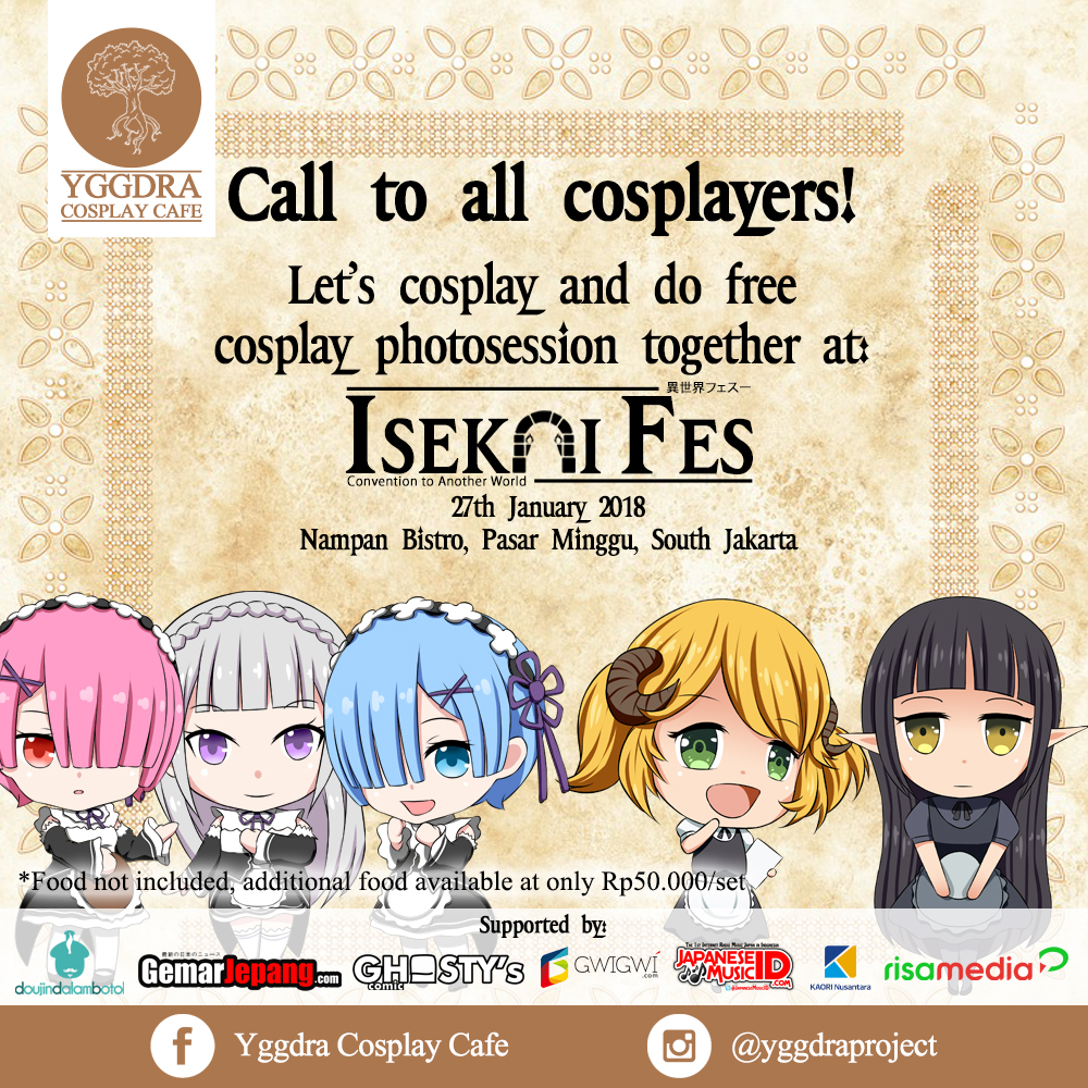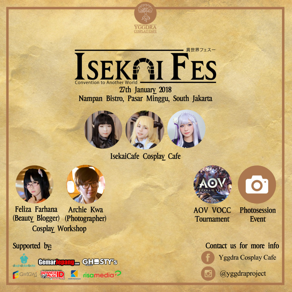 Pada tanggal 27 Januari 2018, komunitas Yggdra Cosplay Cafe menyelenggarakan sebuah mini-event bertajuk IsekaiFes yang terdiri dari berbagai acara mulai dari workshop, community gathering, turnamen game, hingga cosplay cafe IsekaiCafe. Pada awalnya acara ini memang direncanakan hanya dengan konsep sebuah cosplay cafe saja. Namun untuk menghadirkan sesuatu yang beda, Yggdra Cosplay Cafe menyatukan sebuah mini event dengan cosplay cafe.