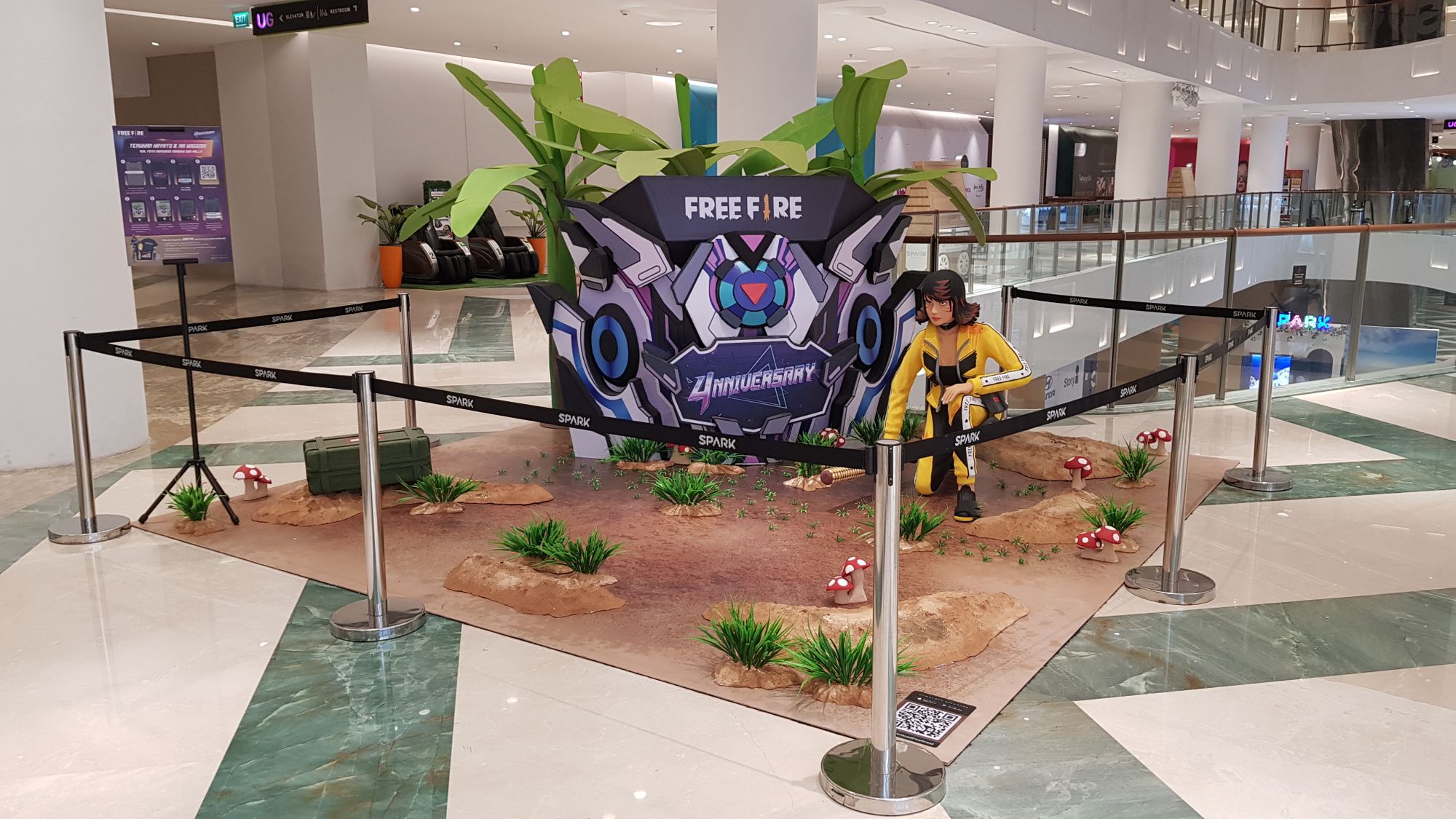 Tidak berhenti sampai disitu saja, Garena juga akan berkolaborasi dengan Lippo Mall untuk menghadirkan pop-up Free Fire 4nniversary booth di 40 mall Lippo Group di seluruh Indonesia. Menggunakan teknologi Augmented Reality (AR), booth ini akan menghadirkan 3 karakter jagoan Free Fire yaitu Kelly, Mr. Waggor, dan Hayato yang bersama-sama hadir merayakan Hari Ulang Tahun Free Fire di berbagai lokasi di Indonesia. Fitur ini dapat diakses melalui freefire4tahun.com. Setelah masuk ke website, scan QR code yang tersedia, lalu arahkan kamera ke Gloo Wall yang ada di booth. Karakter Hayato dan Mr. Waggor akan muncul dan siap untuk berfoto bersama.