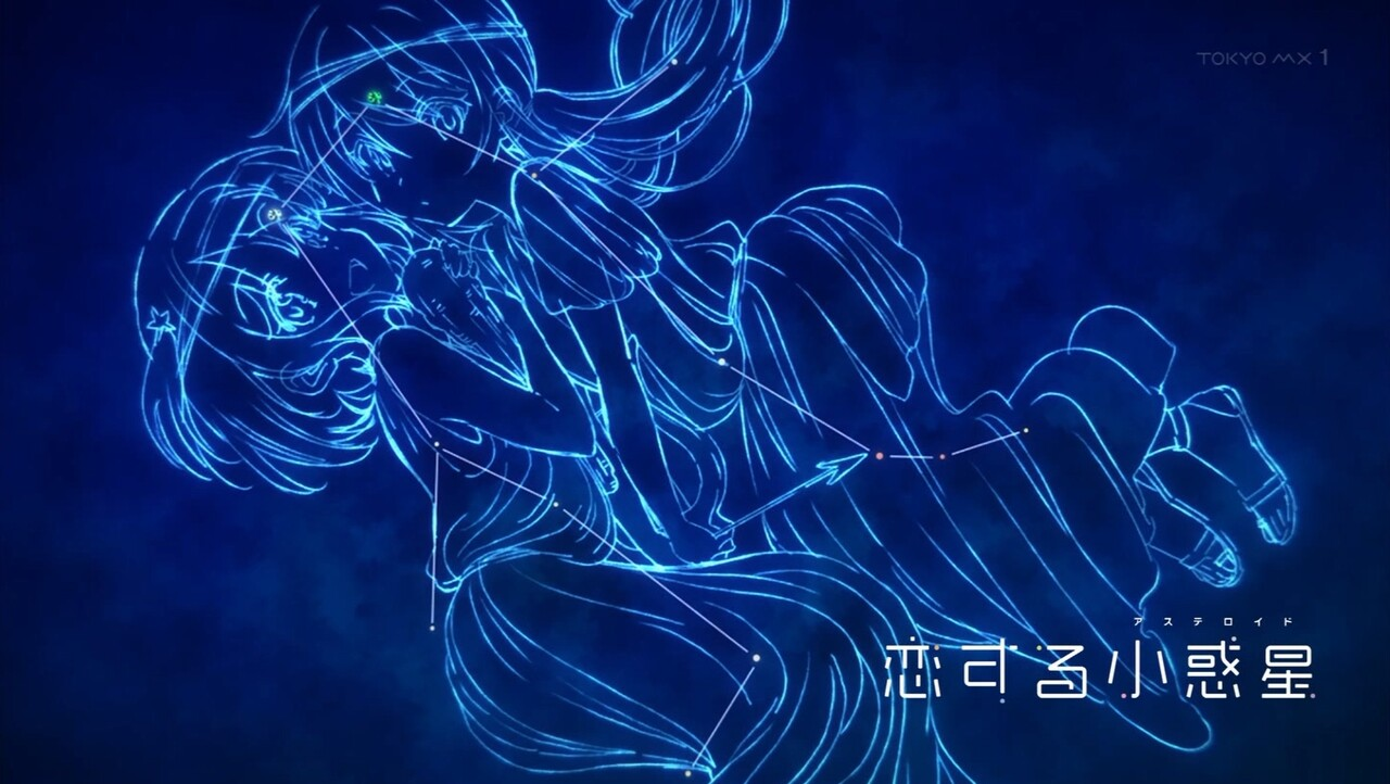 Hal yang paling menarik bagi saya adalah gambar transisi bagian di pertengahan episode (eyecatcher) yang menunjukkan para tokoh Koisuru Asteroid yang menjadi rasi bintang dalam zodiak.
