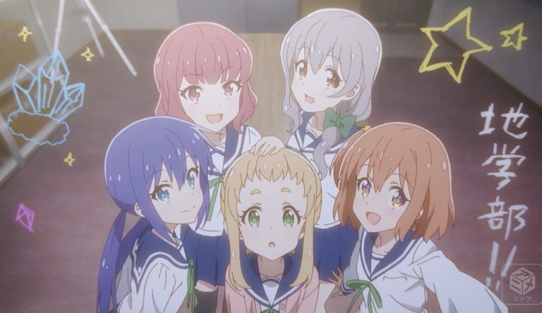 Lima anggota Ekskul Geosains SMA Hoshizaki. (© Quro/ Houbunsha/ Hoshizaki Earth Science Study Club)